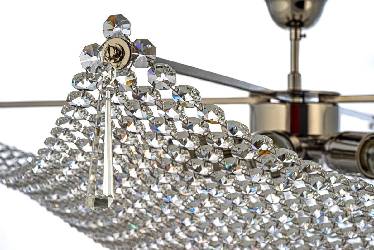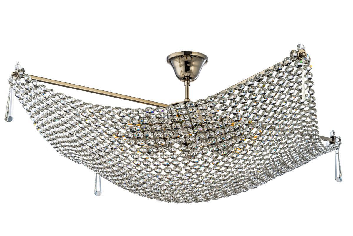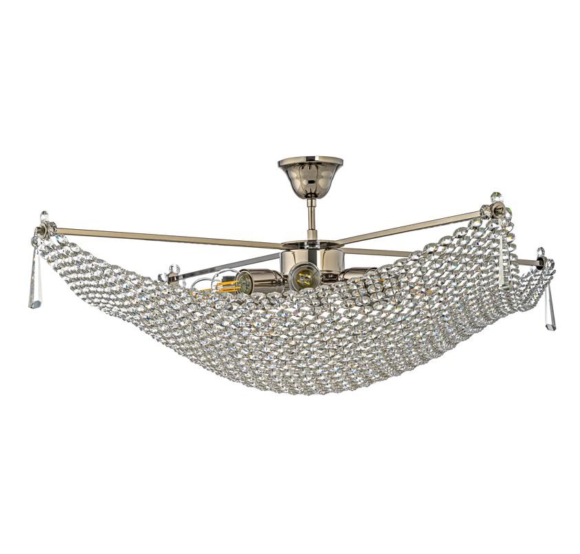 Люстра серии Roma E 1.3.80.501 N станет ярким акцентом в интерьере. Ее никелированная арматура изящно перекрещивается, создавая основу для широкого полотна из шестигранных хрусталиков, которые формируют сверкающий навес. Длинные вытянутые кристаллы на концах арматуры добавляют утонченности, отражая свет и заполняя пространство игрой бликов. Восемь ламп общей мощностью 480 Вт обеспечивают освещение до 24 м², что делает этот светильник идеальным для просторной гостиной или столовой.
