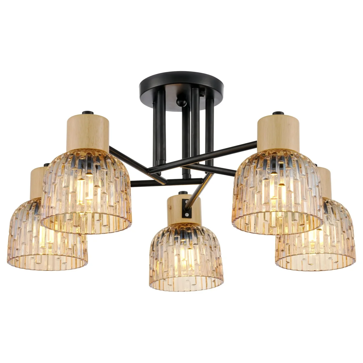 Люстра потолочная 213-027-05 Velante янтарная на 5 ламп, основание чёрное в стиле современный