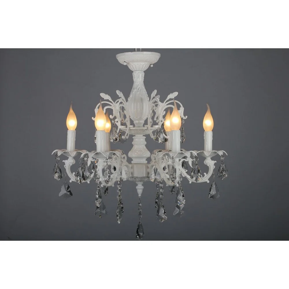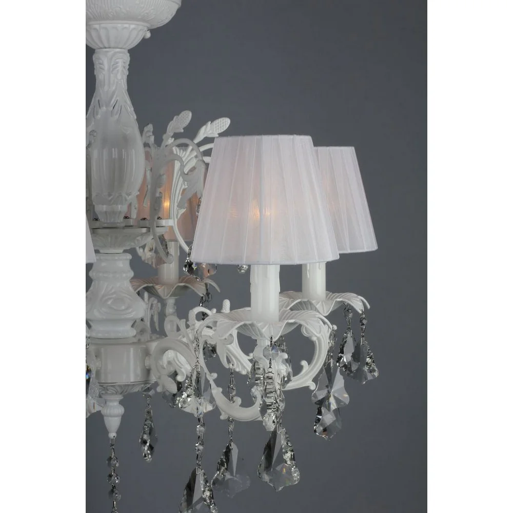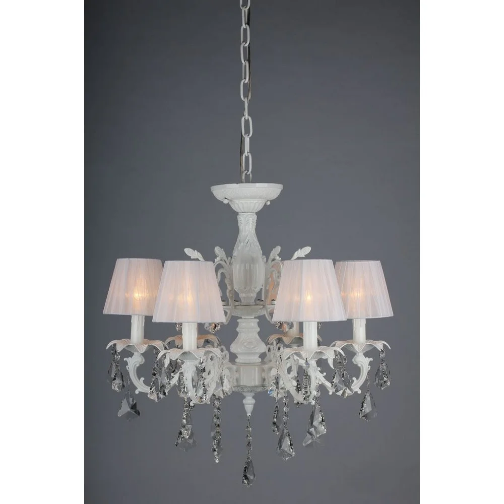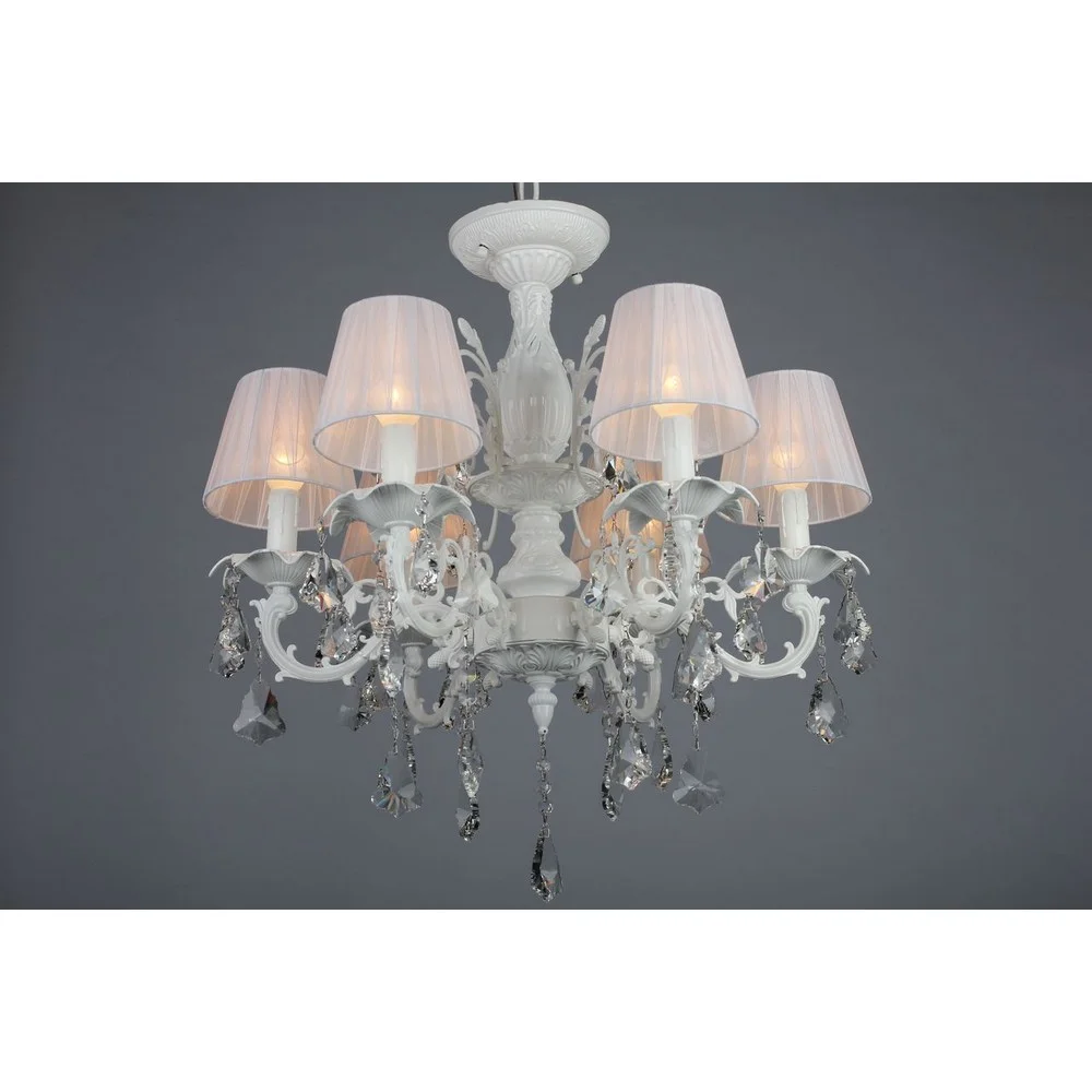 Элегантная люстра Omnilux Catanzaro станет настоящей изюминкой вашего интерьера. Ее изысканный классический стиль подчеркивается арматурой, выполненной в стиле под ковку, и изогнутыми рожками, украшенными декоративными элементами из окрашенного металла и хрустальными подвесками. Белые тканевые плафоны гармонично сочетаются с белой металлической арматурой, создавая утонченный и стильный образ.