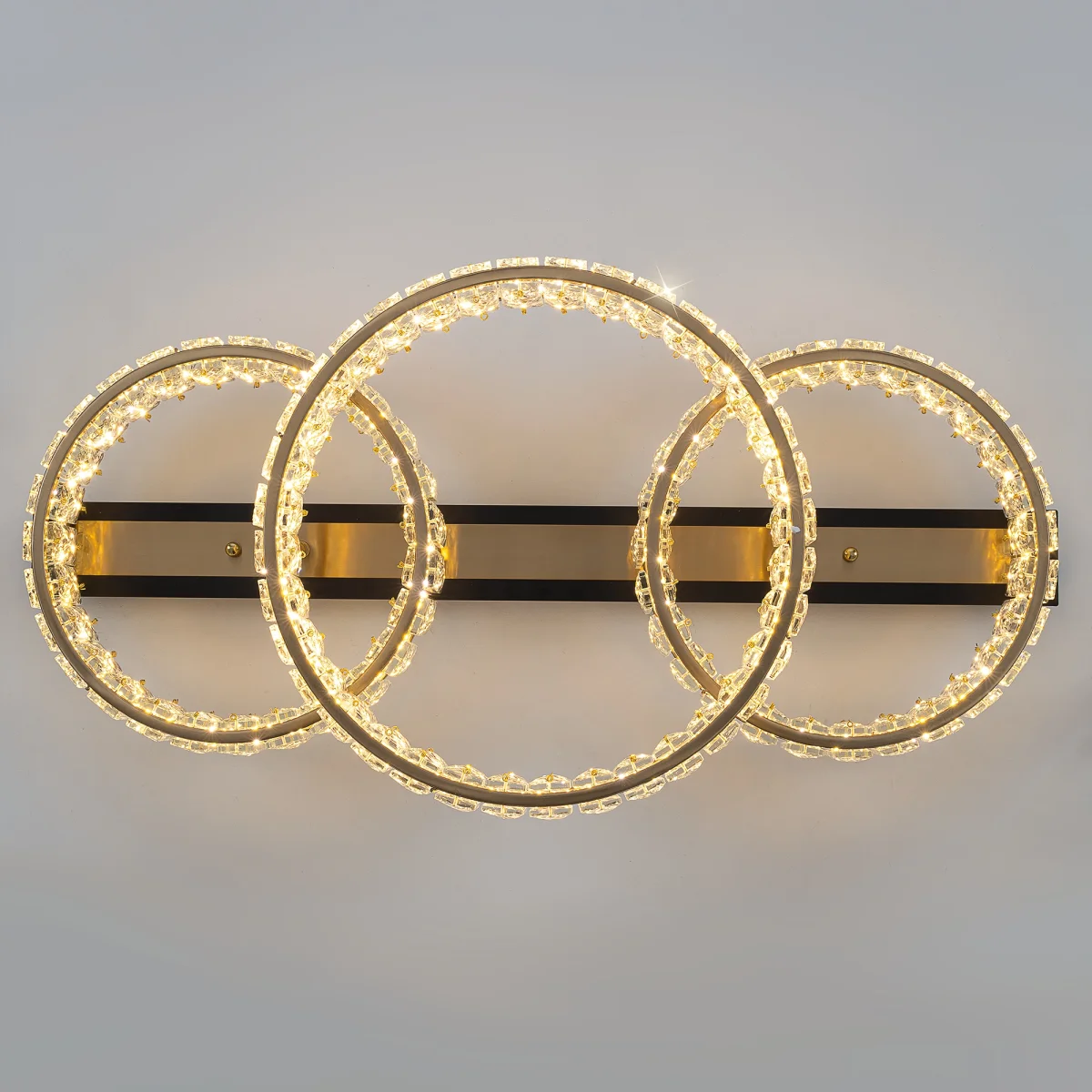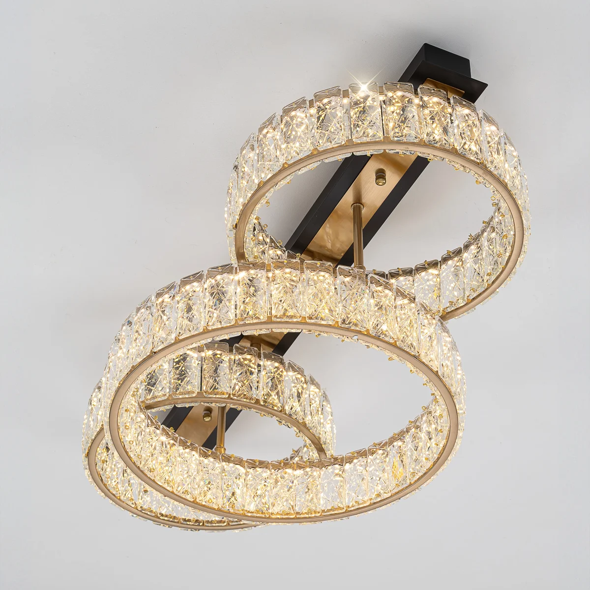 PALANT CL325162 в современном стиле — это прекрасный образец сочетания классического хрусталя и новейших светодиодных технологий. Каркас люстры — металлический, сочетаются черные и бронзовые элементы. На прямоугольном основании закреплены три кольца-модуля с хрустальным рассеивателем. Светодиодный свет с цветовой температурой 3000К мягко рассеивается в пространстве, играя на хрустальных гранях радужными искрами. Общая мощность люстры — 45Вт, ее можно установить на любой потолок, в том числе, натяжной.