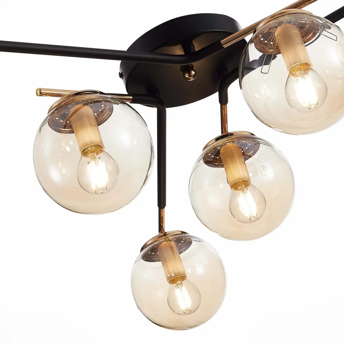 Люстра потолочная Литерно (Literno) SLE106902-06 Evoluce прозрачная янтарная на 6 ламп, основание чёрное в стиле современный шар фото 4