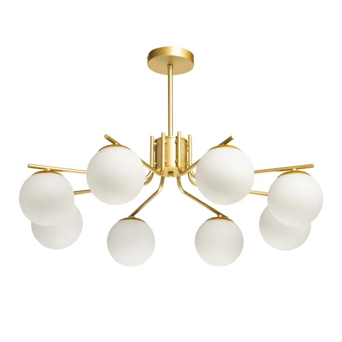 Люстра потолочная Оливия 306017208 DeMarkt в стиле Современный, рекомендуем его для установки в прихожей, кухне, гостиной или спальне, подходит для натяжного потолка при использовании светодиодных ламп, будет идеально дополнять светильники коллекции Оливия от фабрики DeMarkt. Характеристики: плафон - Белый, материал плафона - Стекло, цвет арматуры - Золотой, материал арматуры - Металл. В светильнике 8 ламп мощностью по 60 Вт с цоколем E27, площадь освещения до 24 кв.м, размеры светильника *480***750** мм. Люстру 306017208 Оливия от фабрики DeMarkt можно купить с доставкой из рук в руки по Москве и России в нашем специализированном интернет магазине интерьерного освещения Уютный-Свет.рф. Вопросы по этому светильнику можете уточнить по WhatsApp или в нашем Telegram канале.