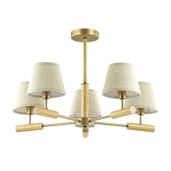 Люстра потолочная Robin 3703/5C Lumion в стиле Классика, рекомендуем ее для установки в прихожей, кухне, гостиной или спальне, возможна установка на натяжной потолок при использовании светодиодных ламп, будет идеально дополнять светильники коллекции Robin от фабрики Lumion. Характеристики светильника: цвет плафона - Бежевый, материал плафона - Текстиль, цвет арматуры - Бронзовый, материал арматуры - Дерево / Металл. В светильнике 5 ламп мощностью по 40 Вт с цоколем E14, площадь освещения до 10 кв.м, размеры светильника *420***650** мм. Стильную и красивую люстру 3703/5C Robin от фабрики Lumion можно купить с доставкой из рук в руки по Москве и России в нашем специализированном интернет магазине интерьерного освещения Уютный-Свет.рф. Вопросы по этому светильнику можете уточнить в нашем Telegram канале.