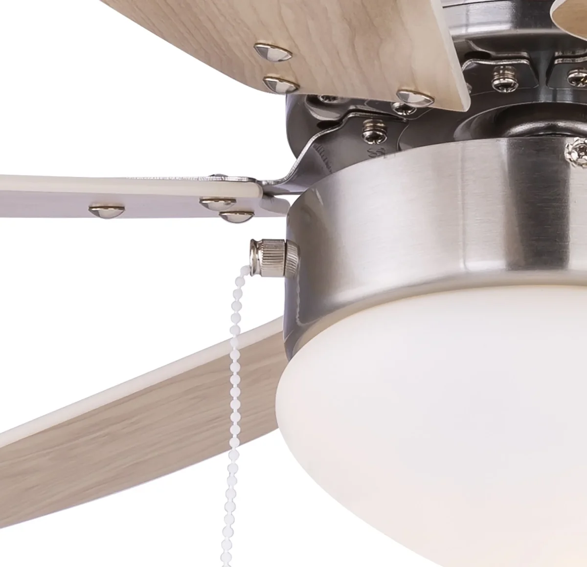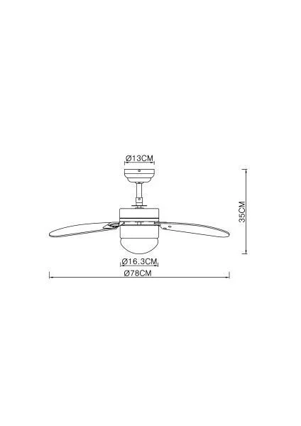Лопасти из мдф, цвет бук; Максимальная мощность двигателя 50W; Оптимальный эффект воздушного потока рассчитан на 12 кв2; Три уровня скорости вращения.