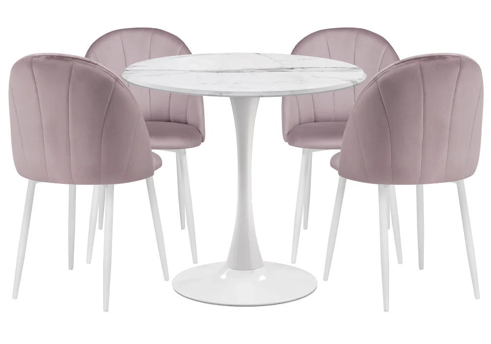 Обеденная группа Камау мрамор белый / белый / розовый 599444 Woodville