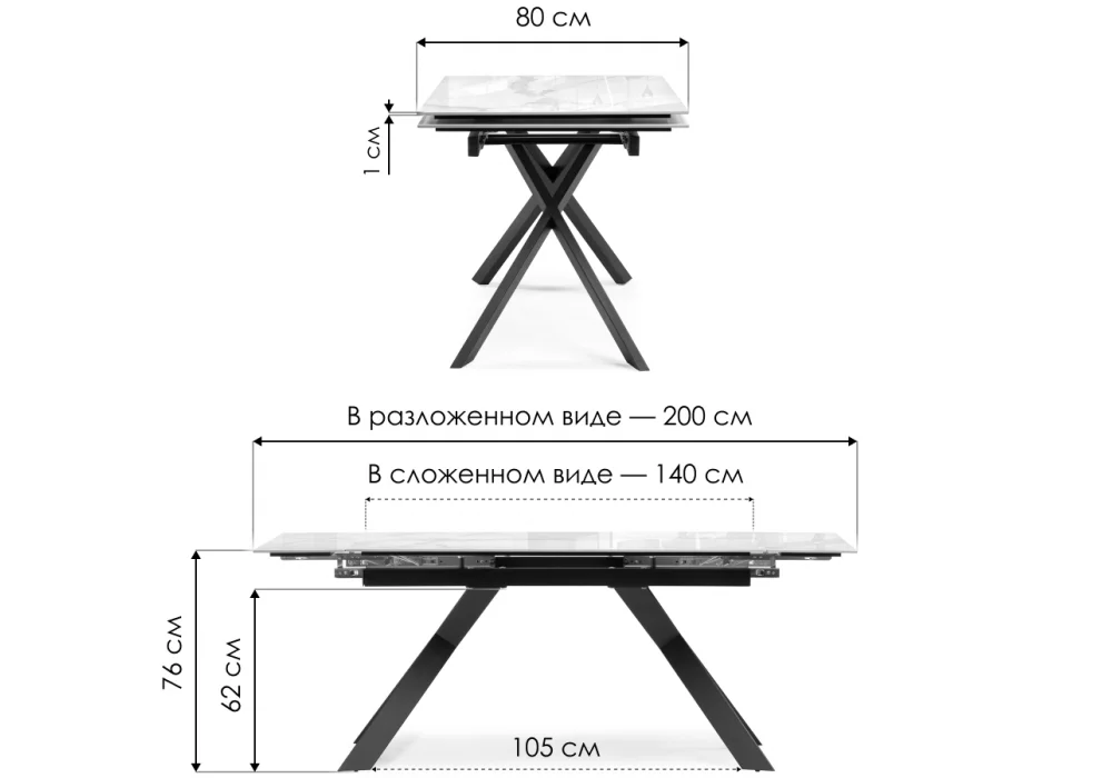Керамический стол Хилбри 140(200)х80х76 statuario cara / черный 588051 Woodville столешница белая из керамика