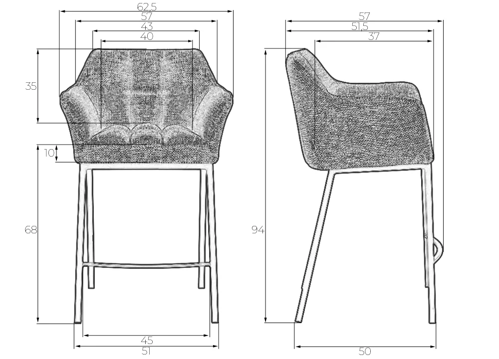 Набор 2 шт Стул барный DOBRIN LUCAS COUNTER (серая ткань (F-22)) цвет сиденья серая ткань (F-22), цвет основания черный Dobrin, серый/ткань, ножки/металл/, размеры - *940**** фото 10