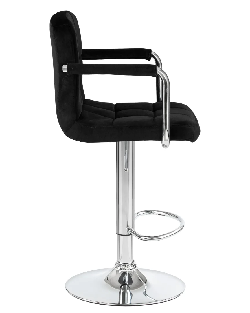 Барный стул из коллекции Kruger Arm Dobrin идеально впишется в ваш интерьер, привнося стиль и комфорт в кухню, бар или кафе. Обивка из черного велюра придаёт элегантность и уют, а хромированная сталь основания добавляет современности. С возможностью регулировки высоты сиденья (610-820 мм) и наличием подлокотников, этот стул обеспечивает оптимальный комфорт, позволяя легко адаптироваться под любые столы и ситуации.