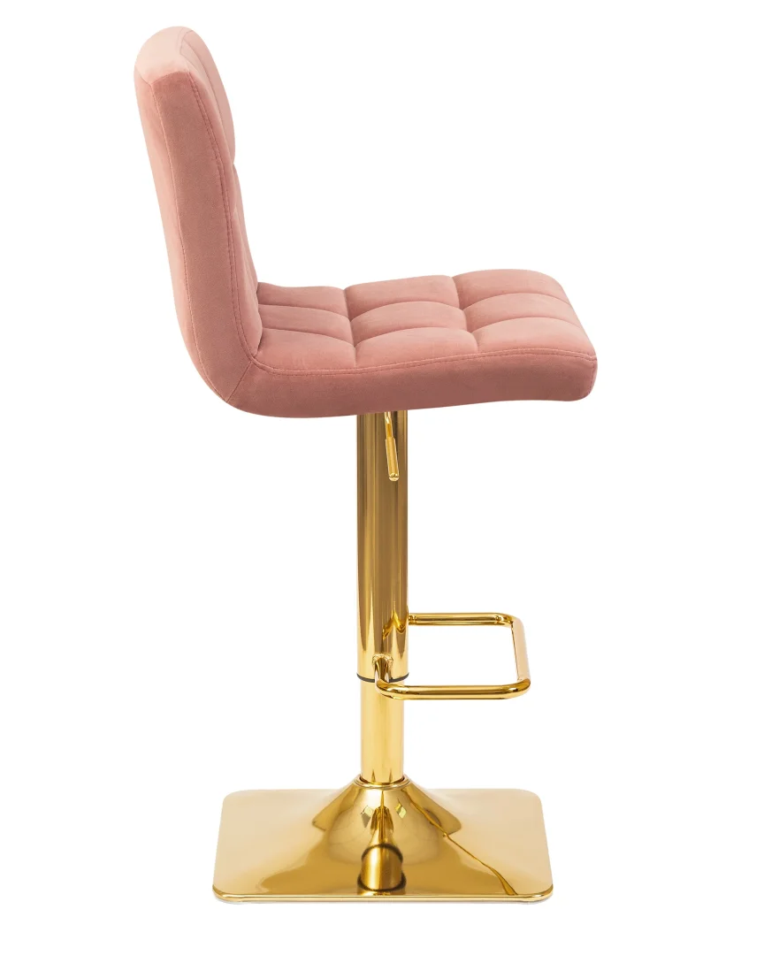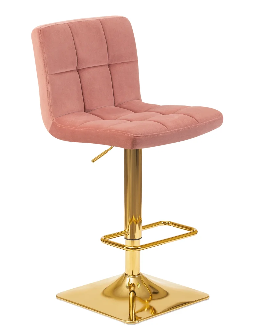 Барный стул из коллекции Goldie Dobrin станет ярким акцентом в вашем интерьере, будь то домашняя кухня, стильный бар или уютное кафе. Обивка из мягкого велюра пудрово-розового цвета (ширина и глубина сиденья 420 мм и 390 мм) создает атмосферу уюта и стиля, а золотые металлические ножки добавляют элегантности. Регулируемая высота сиденья (630–830 мм) позволяет подстроить стул под разные столы, обеспечивая комфортное использование в любых условиях.