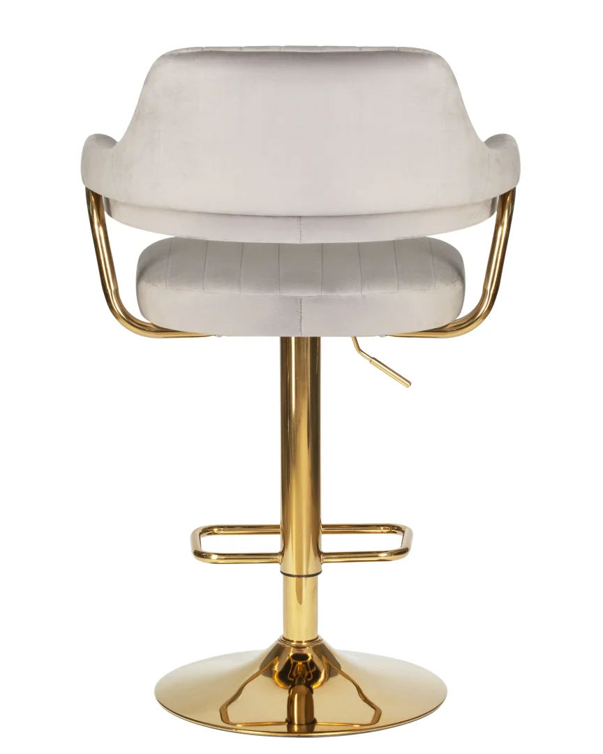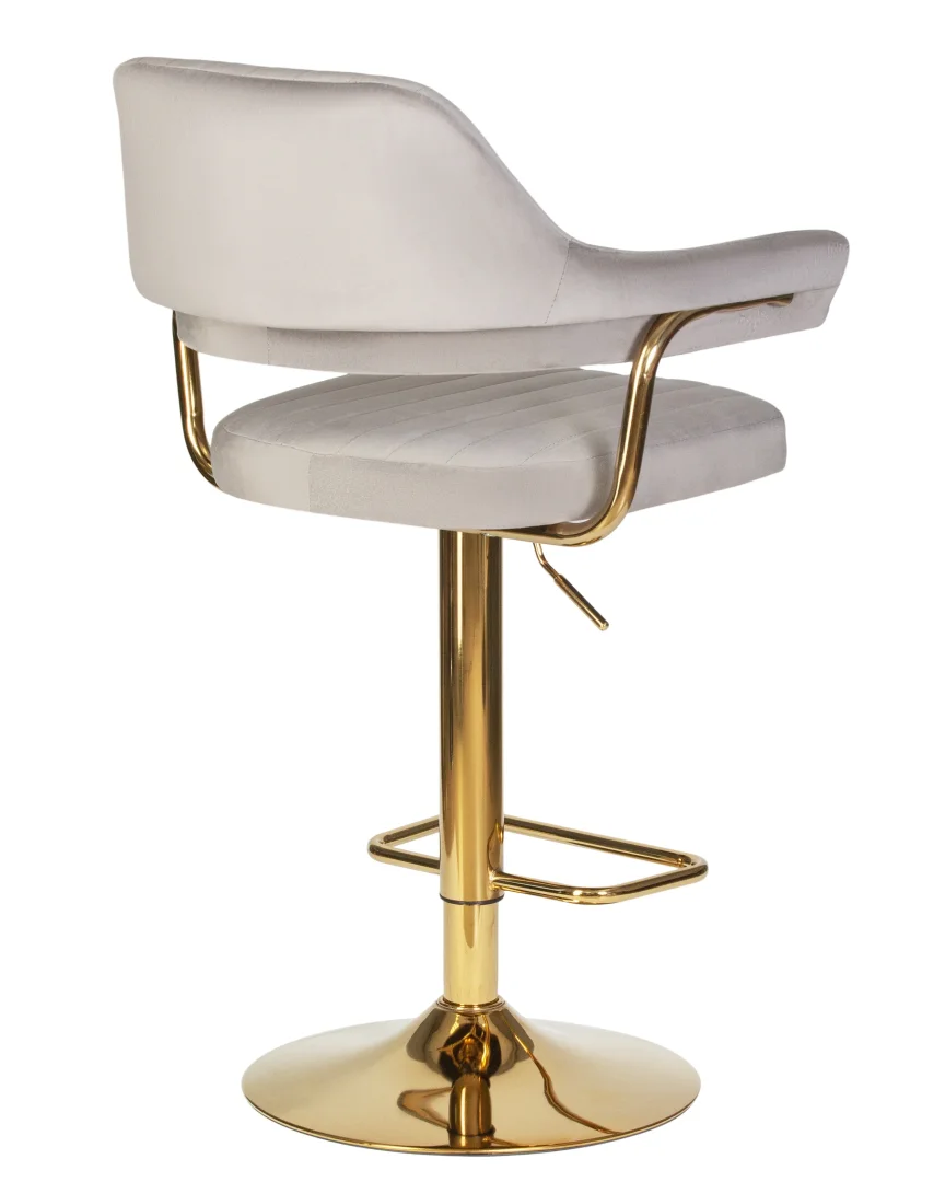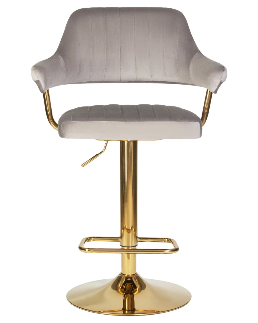 Стул Charly Dobrin в серой велюровой обивке с золотыми металлическими ножками станет настоящим украшением современной кухни, бара или кафе. Его стильное сочетание цветов и материалов добавляет интерьеру изысканности, а мягкая обивка из велюра обеспечивает комфорт. Регулировка высоты сиденья (от 610 до 820 мм) позволяет использовать стул с различными барными стойками, а наличие подлокотников дарит дополнительное удобство.