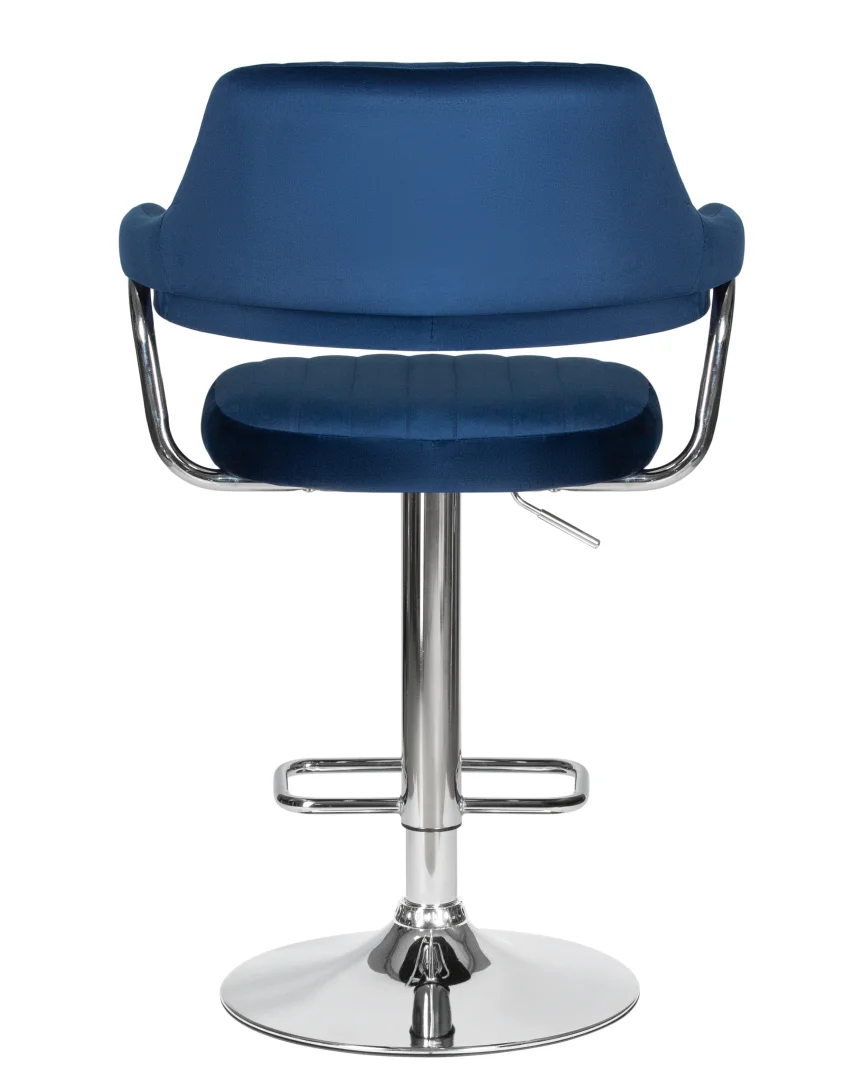 Барный стул Charly Dobrin с синим велюровым сиденьем и хромированной стальной опорой добавит изысканности и комфорта вашему интерьеру, будь то домашняя кухня, бар или кафе. Регулируемая высота сиденья (от 610 до 820 мм) и удобная спинка с подлокотниками создают эргономичные условия для отдыха и общения. Мягкий велюр в сочетании с блеском стали делает стул стильным акцентом в любом современном интерьере.