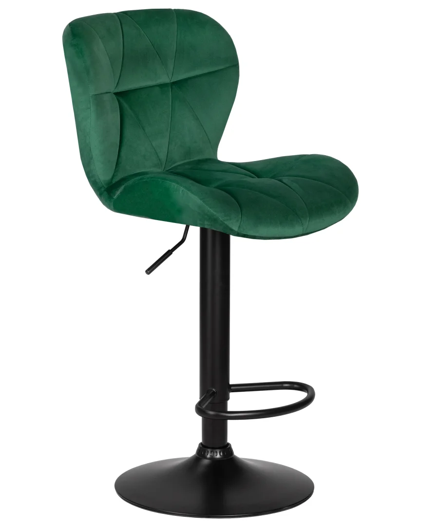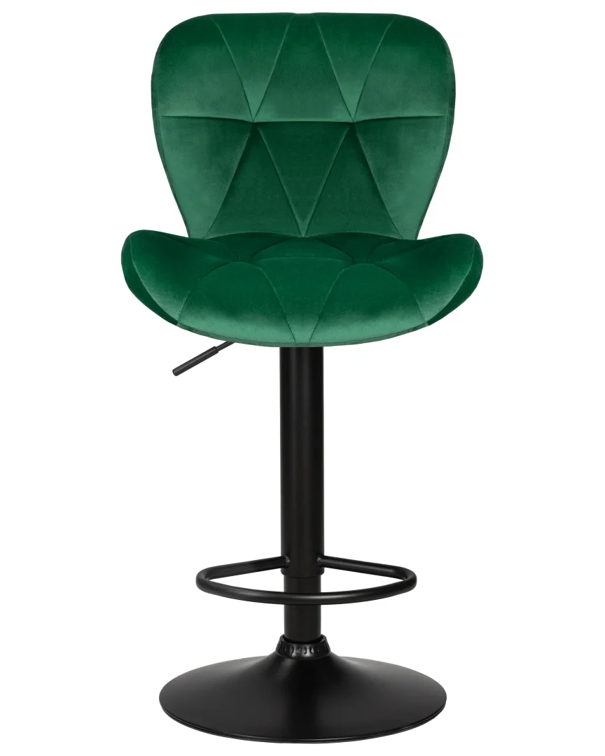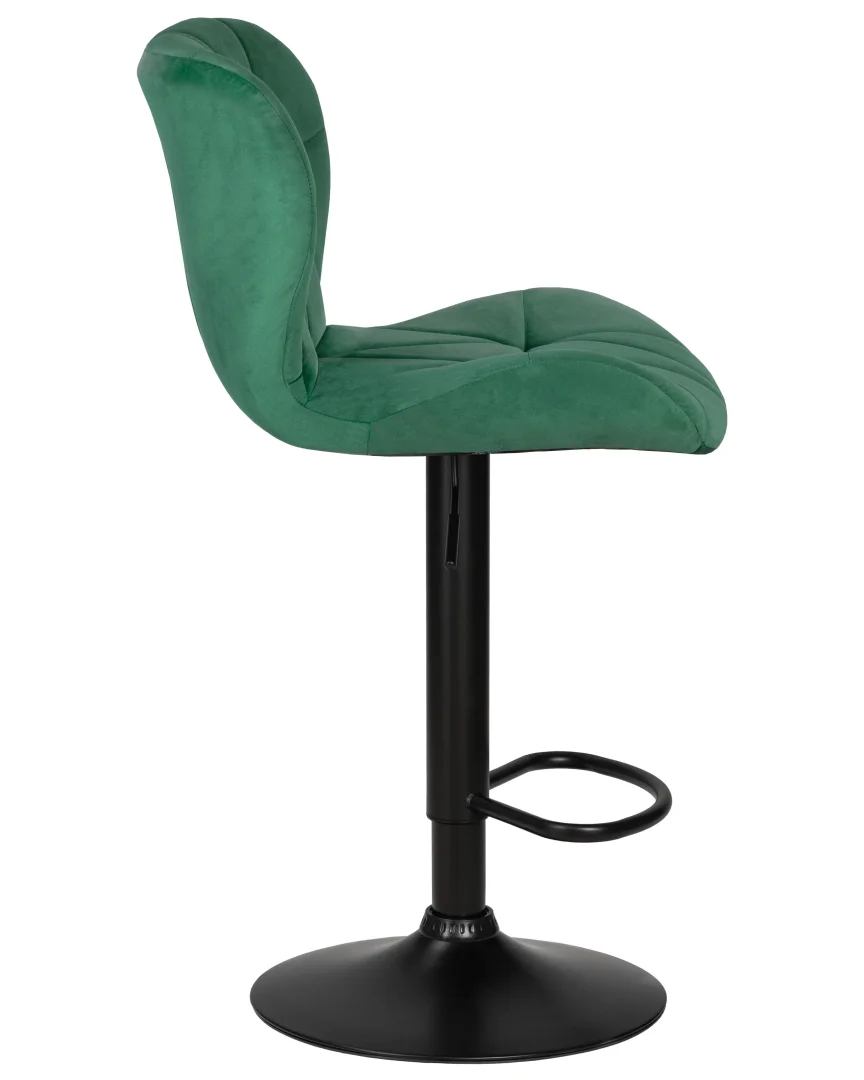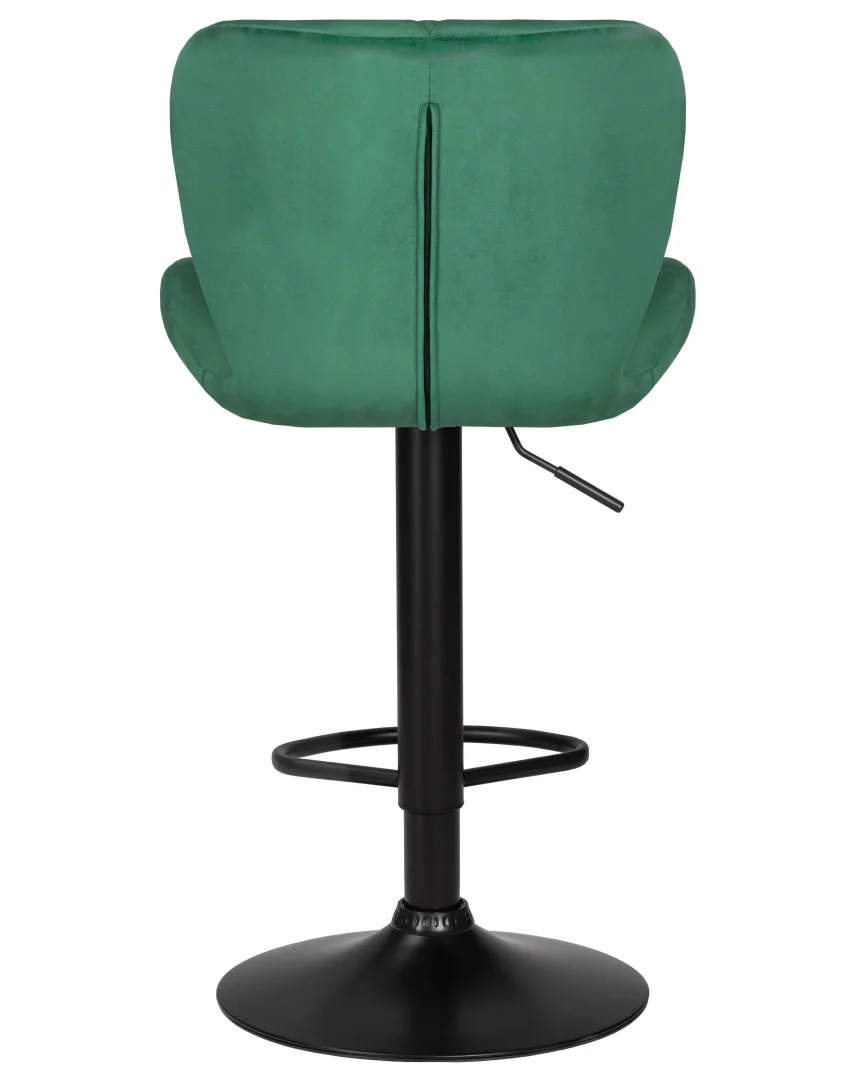 Барный стул Barny с мягким велюровым сиденьем и спинкой без подлокотников станет идеальным дополнением для вашей кухни, бара или кафе. Его современный стиль и зеленый цвет придают интерьеру свежесть и оригинальность. Высота сиденья регулируется от 640 до 850 мм, что позволяет легко адаптировать его под любые столы или барные стойки. Чёрный металлический каркас и фанерные ножки обеспечивают надежность и долговечность, выдерживая нагрузку до 100 кг.