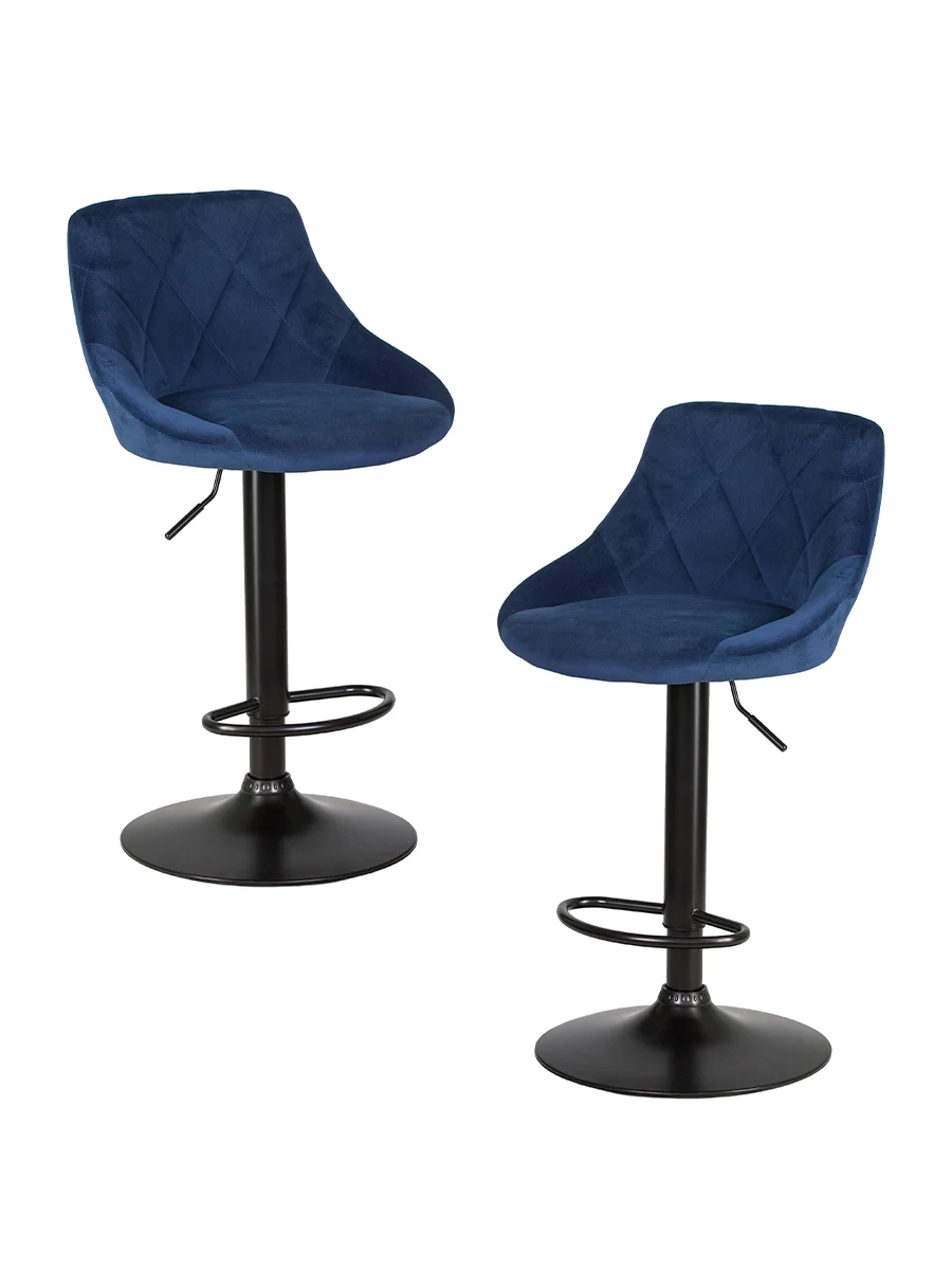 Стул барный набор 2 шт. SET-2 5007_BlackBase-LM LOGAN BLACK, цвет сиденья синий (MJ9-117), цвет основания черный Dobrin, /велюр, ножки/металл/чёрный, размеры - 840*1060***455*480