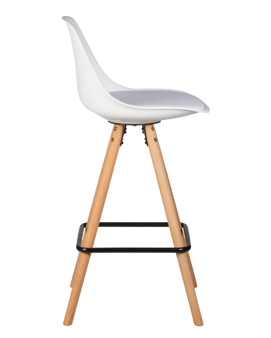 Барный стул из коллекции Ronni Dobrin идеально подойдет для домашней кухни, бара или кафе, добавляя современный акцент в любое пространство. Сиденье из белой экокожи не только стильно выглядит, но и легко чистится, что делает его практичным выбором для ежедневного использования. Прочный каркас из полипропилена и металлические ножки цвета светлый бук обеспечивают надежность и максимальную нагрузку до 140 кг, а компактные размеры (ширина 430 мм, глубина 450 мм) позволяют удобно размещать несколько стульев даже в ограниченном пространстве.