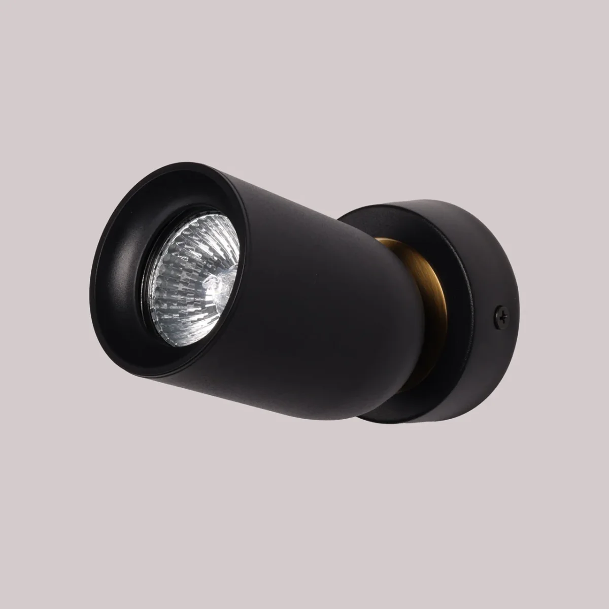 Черный цвет придает настенному бра брутальности и строгости. Для декоративного эффекта, основание закрыто пластиной цвета латуни. Контрастное сочетание черного цвета и декора цвета латуни добавляет бра изысканности. Поворотный плафон позволяет направлять световой поток в нужную сторону, что создает комфортное освещение. Заменяемый источник света удобен в эксплуатации.