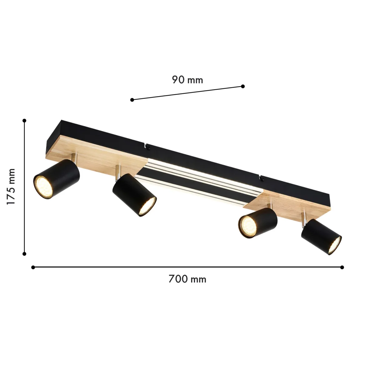 Спот с 4 лампами Olika 4437-4C F-promo в стиле Современный, рекомендуем его для установки в прихожей вытянутой формы, кухне, гостиной или спальне в группе аналогичных светильников, где он будет идеально дополнять светильники коллекции Olika от фабрики F-promo. Характеристики: плафон - Чёрный, материал плафона - Металл, цвет арматуры - Коричневый / Чёрный, материал арматуры - Дерево / Металл. В светильнике 4 лампы мощностью по 50 Вт с цоколем GU10, площадь освещения до 12 кв.м, размеры светильника *175*700*90*** мм. Поворотный спот на 4 лампы 4437-4C Olika от фабрики F-promo можно купить с доставкой из рук в руки по Москве и России в нашем специализированном интернет магазине интерьерного освещения Уютный-Свет.рф. Вопросы по этому светильнику можете уточнить в нашем Telegram канале.
