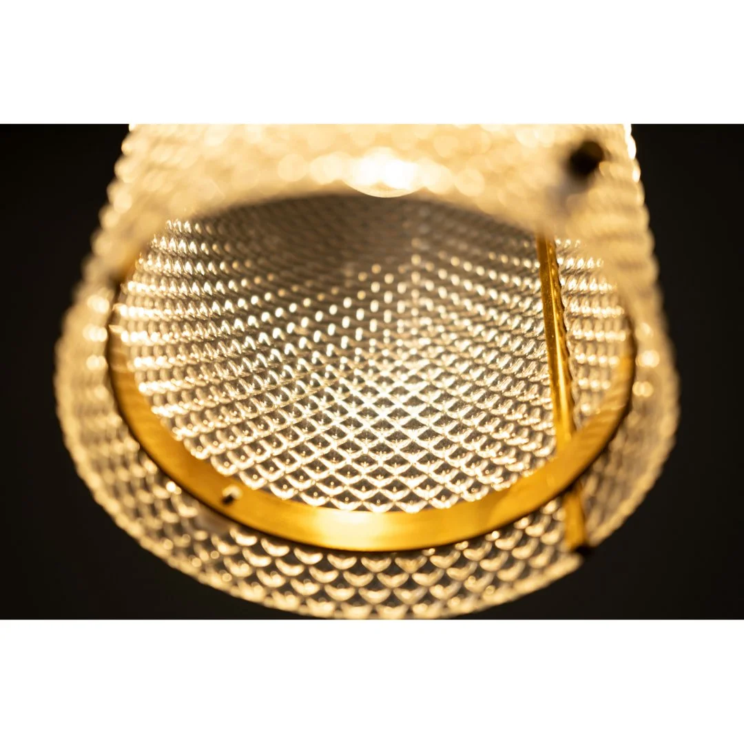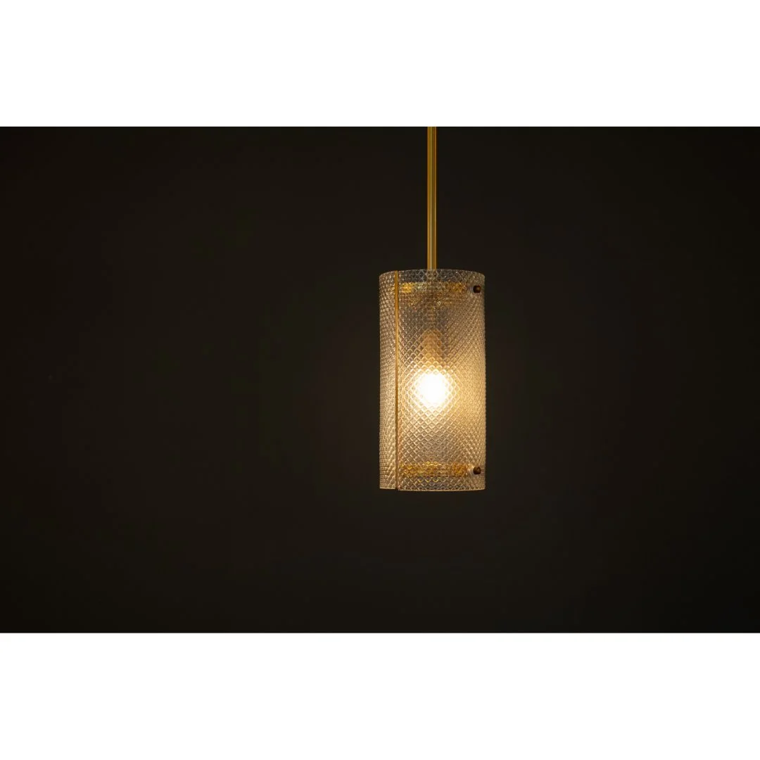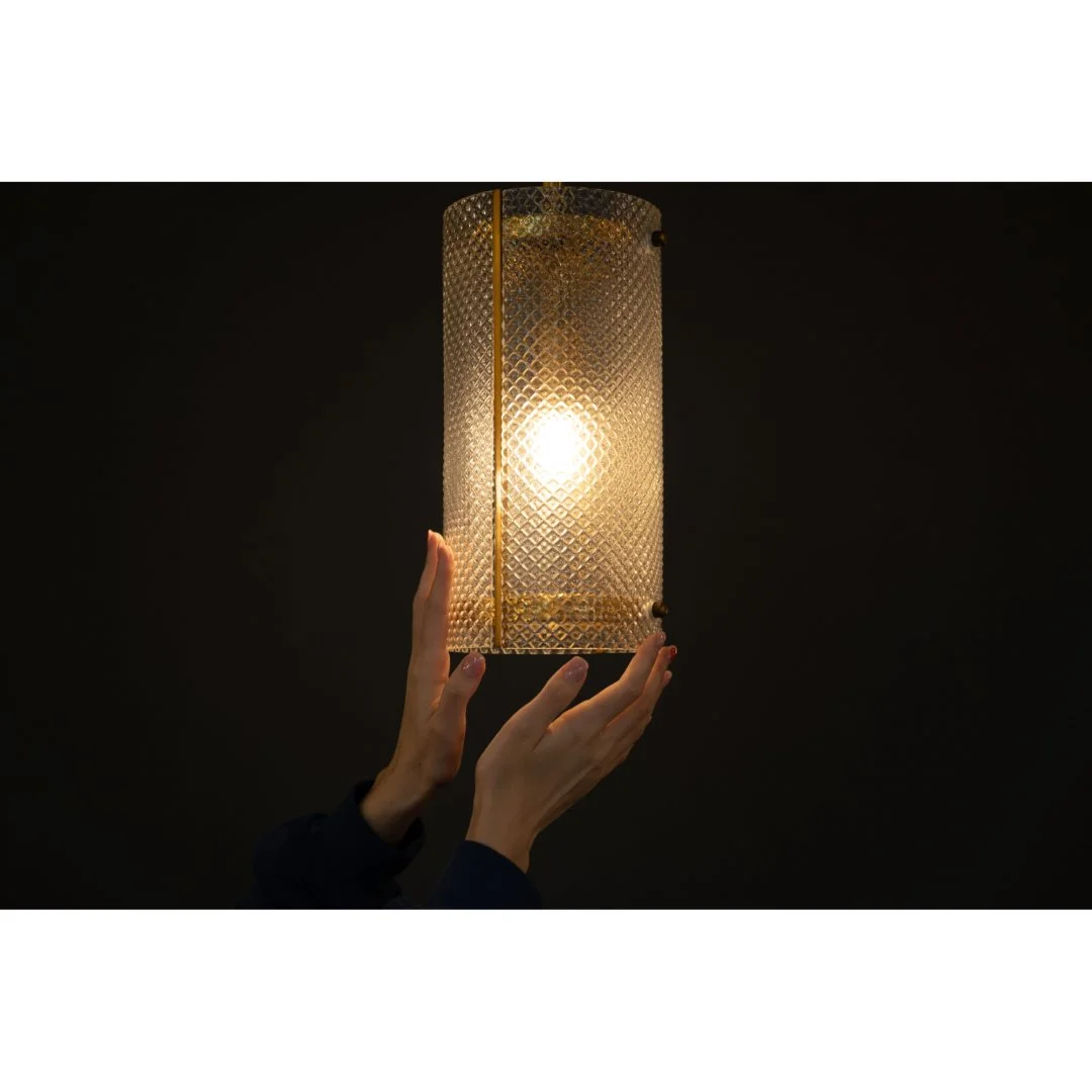 Необычный винтажный светильник с абажуром из рифленого стекла. Минималистичный и при этом бесконечно стильный, он подойдет для каждого пространства, где ценят красоту и атмосферу. Яркие золотые элементы можно сочетать с другими предметами мебели и декора.