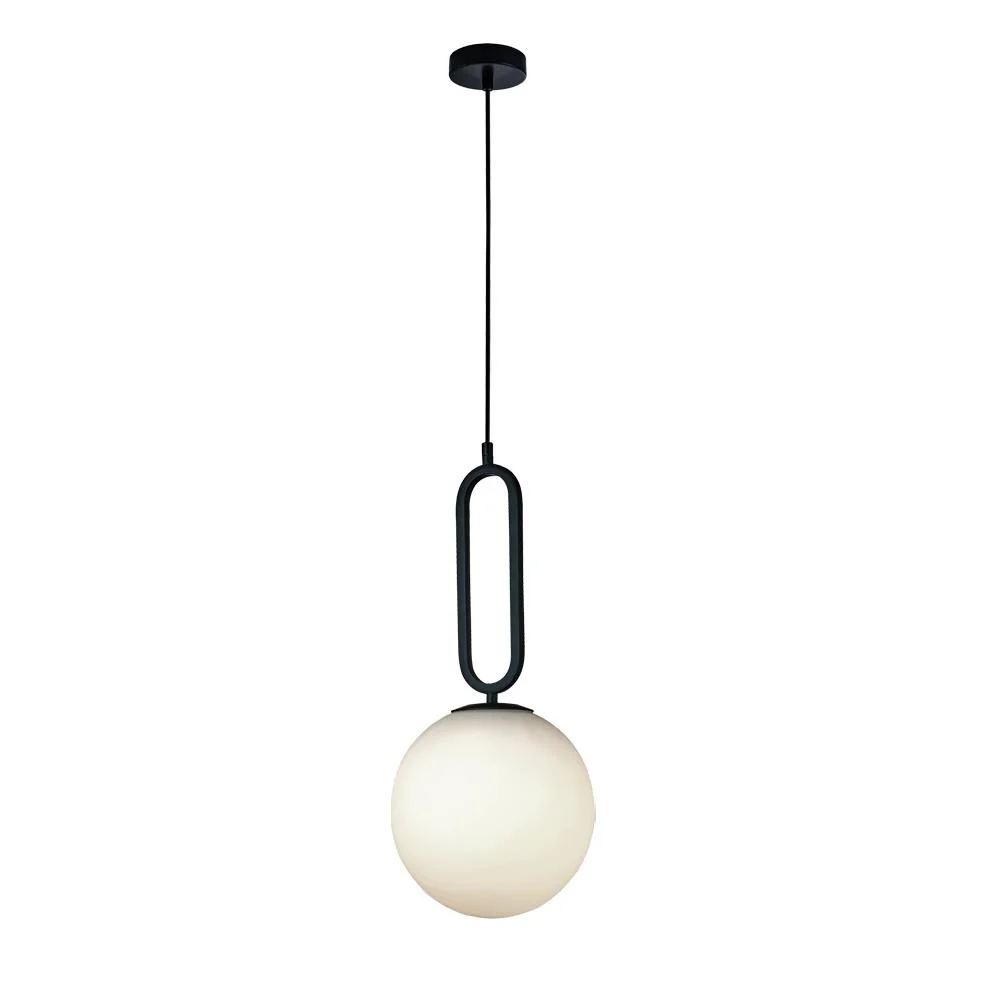 Светильник подвесной 0779PLB-1BK Milosh Tendence белый на 1 лампу, основание чёрное в стиле современный шар