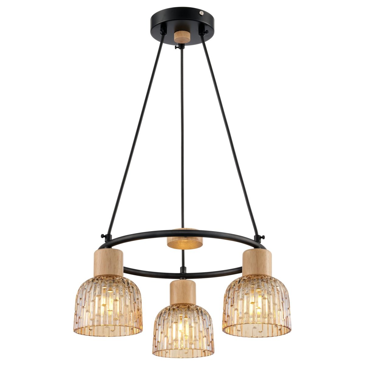 Светильник подвесной 213-023-03 Velante янтарный на 3 лампы, основание чёрное в стиле современный