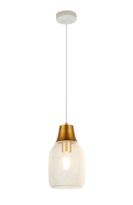 Лёгкий акцент в стиле лофт. Светильник коллекции Adalina сочетает в себе белый металлический плафон с сетчатой структурой и белую арматуру в сочетании с золотистыми элементами. Его форма напоминает вытянутую каплю с плавными изгибами, создающими мягкий и уютный образ. Матовая поверхность добавляет строгости и стильности. Светильник подвешивается на шнуре, длина которого регулируется от 20 до 100 см. Это позволяет адаптировать его под разную высоту потолков и зонировать освещение — например, над обеденным столом или в зоне отдыха. Работает с одной лампой E27 мощностью до 60 Вт. Направление света — вниз, что делает модель идеальной для точечной подсветки. Крепится на планку, выключатель — на стене. Подходит для натяжных потолков. Отличный выбор для кухни, кафе, спальни, гостиной или загородного дома. Уместен как в современном интерьере, так и в лофт-пространствах. Создаёт тёплую атмосферу и добавляет характер любому помещению.