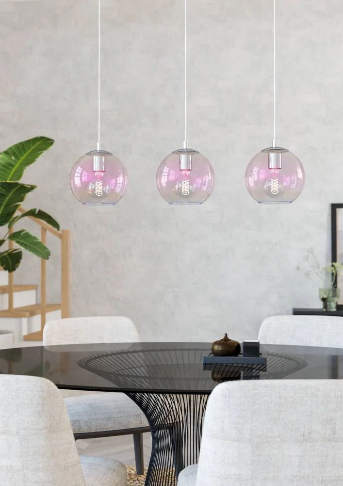 Светильник подвесной Ariscani 901919 Eglo прозрачный разноцветный на 3 лампы, основание хром в стиле современный шар линейный