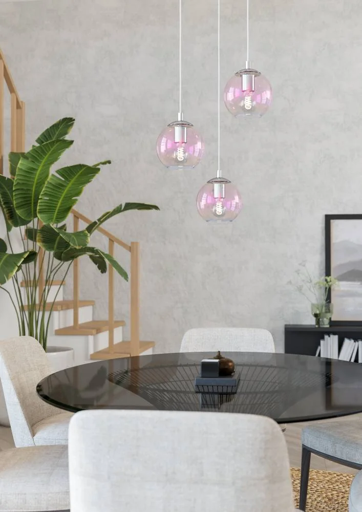 Светильник подвесной Ariscani 901921 Eglo прозрачный разноцветный на 3 лампы, основание хром в стиле современный шар каскад фото 5