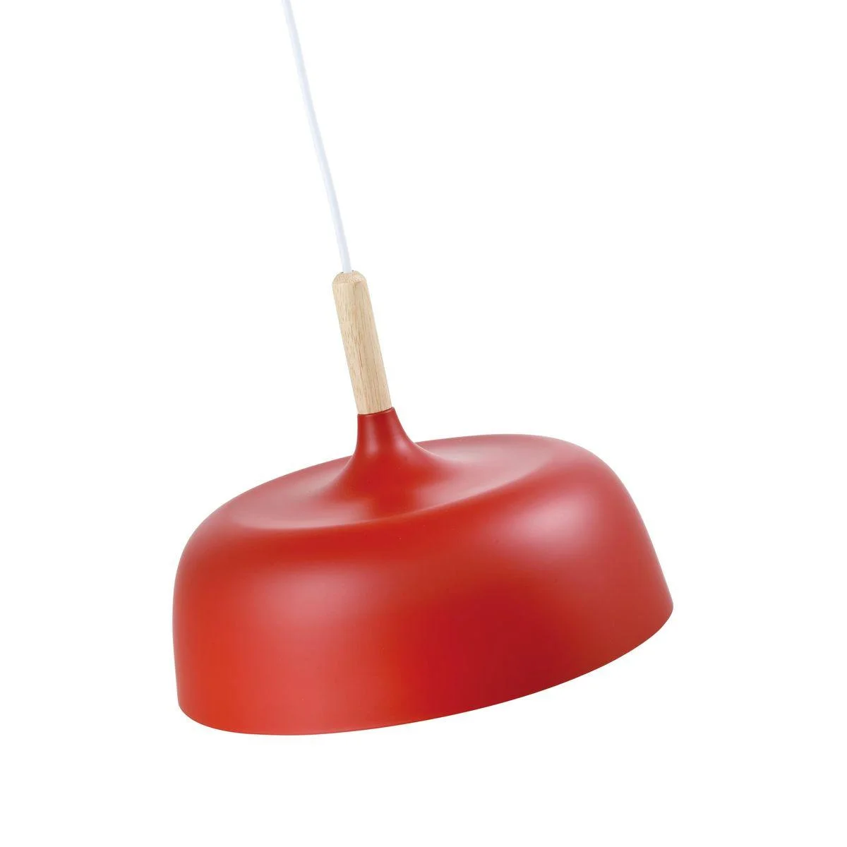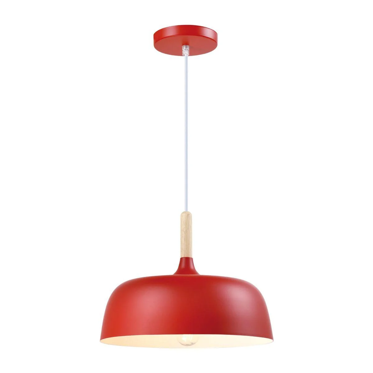 Подвесной светильник Augustina в сдержанном лаконичном дизайне с алюминиевым плафоном красного цвета и вставкой из дерева. Прекрасно впишется в интерьер в стиле модерн. Подойдет для освещения кухни, коридоров и холла. Срок службы лампы до 50000 часов. При монтаже светильника, высоту можно отрегулировать.