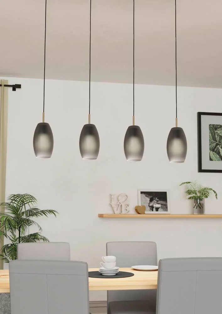 Светильник подвесной Batista 900508 Eglo серый на 4 лампы, основание чёрное в стиле современный фото 2