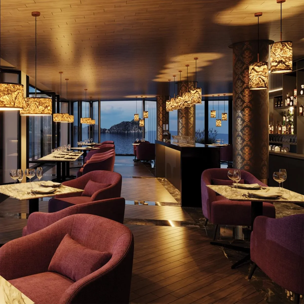 Линия Bergi — это оригинальные светильники с абажуром из натурального природного материала — stone flake — в переводе «каменные хлопья». Тончайший срез (слой) каменной породы наносится на пластиковую подложку для придания формы плафону. Уникальность этого материала в том, что сохраняется красивая природная структура камня с ее неровностями и наслоениями, поэтому поверхность слегка шероховатая. Другой необычной особенностью является то, что в разных цветовых температурах источника света — цвет такого абажура имеет разный цвет. И каждый может выбрать светодиодную лампу с цоколем Е27 в той цветовой температуре, в которой цвет абажура станет подходящим для интерьера.В коллекцию Bergi с цоколем Е27 входит 2 подвеса диаметром 380мм и 190 мм , бра,торшер и настольная лампа.