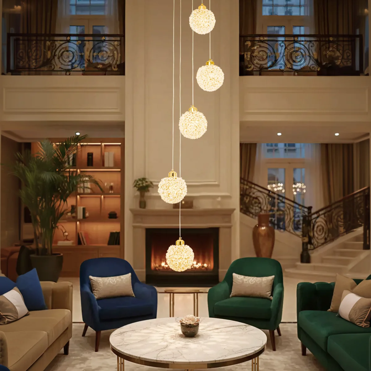 Citilux CLOUDY CL323052 — это изысканное дизайнерское решение, которое гармонично сочетает в себе классические традиции и современные тенденции в освещении. Каркас светильника — металлический, роскошного золотистого цвета. Шарообразные плафоны составлены из множества тонких золотых колечек, внутри каждого из них закреплен кристаллик из прозрачного хрусталя. Тонкие подвесные тросы практически незаметны, создавая ощущение, что светильник парит в воздухе. В светильнике используется 5 лампочек с цоколем Е27, с колбой в форме свечи, мощностью не более 40Вт каждая. Высоту плафонов можно отрегулировать, чтобы подстроиться под высоту потолка. Светильник крепится на планку, его можно установить даже на натяжной потолок.