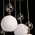 Металлическое основание люстры гальванизировано в цвет латуни. Источники света закрыты круглыми плафонами из белого стекла. Люстра декорирована прозрачными стеклянными сферами с волнистой фактурой.