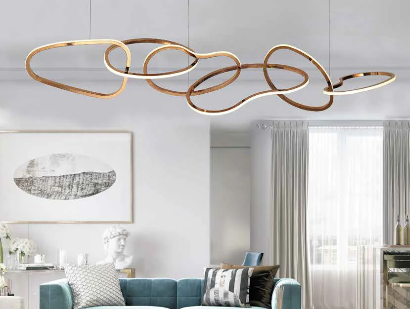 Светильник подвесной LED 15326/S Champagne gold Newport золотой на 6 ламп, основание золотое в стиле минимализм хай-тек современный кольца фото 2