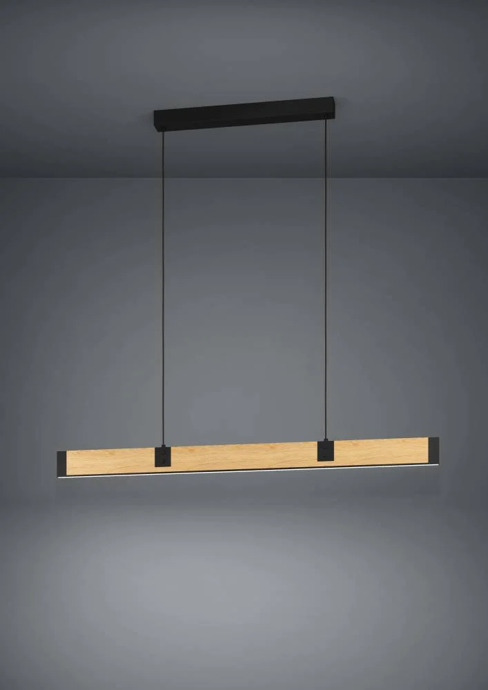 Светильник подвесной LED dimm Caminarro 390225 Eglo в стиле Лофт / Модерн, рекомендуем его для установки в прихожей, кухне, гостиной или спальне, возможна установка на натяжной потолок при использовании светодиодных ламп, будет идеально дополнять светильники коллекции Caminarro от фабрики Eglo. Характеристики светильника: цвет плафона - Бежевый, материал плафона - Дерево, цвет арматуры - Чёрный, материал арматуры - Металл. В светильнике 1 лампа мощностью по 21 Вт с цоколем LED, площадь освещения до 6 кв.м, размеры светильника *1500*1775*50*** мм. Стильный и лаконичный светильник Eglo 390225 Caminarro можно купить с доставкой из рук в руки по Москве и России в нашем специализированном интернет магазине интерьерного освещения Уютный-Свет.рф.