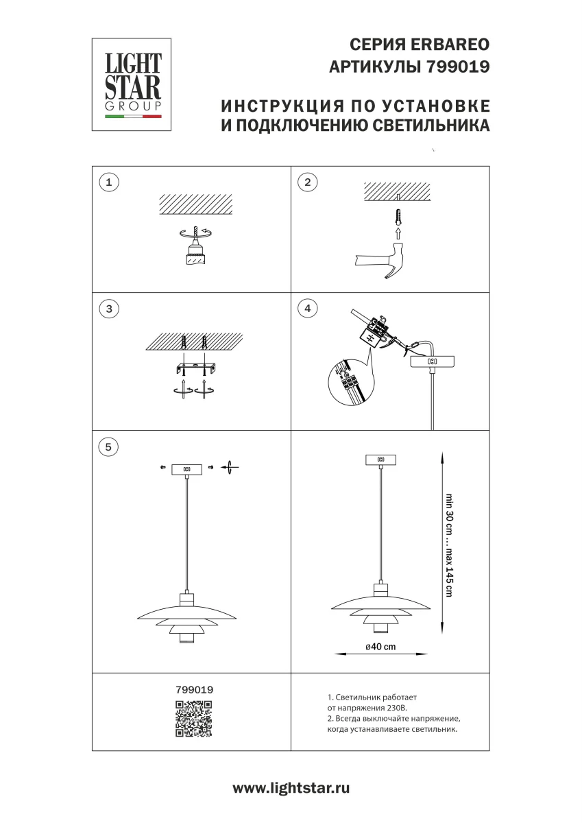 Светильник подвесной LED Erbareo 799019 Lightstar купить с доставкой по Москве и России в интернет магазине Уютный-Свет.рф