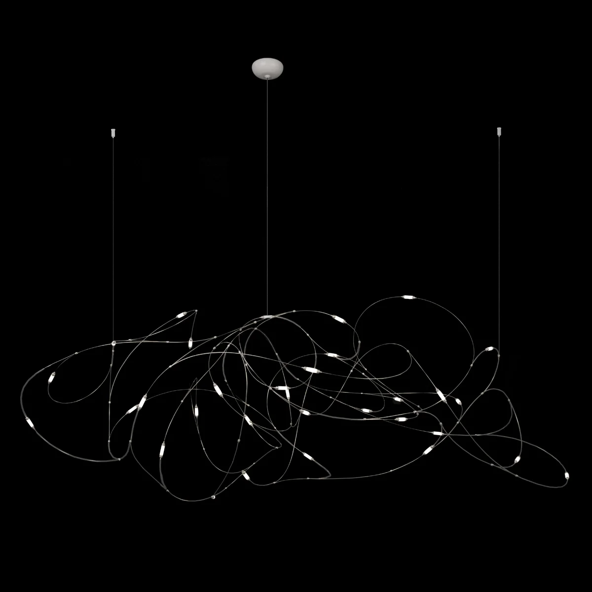 Flock of Light — это тонкий баланс инженерной точности и художественного замысла. Переплетение хаотичных линий и точечных источников света рождает ощущение лёгкости и движения. Коллекция дополнена моделями в цвете Chrome.