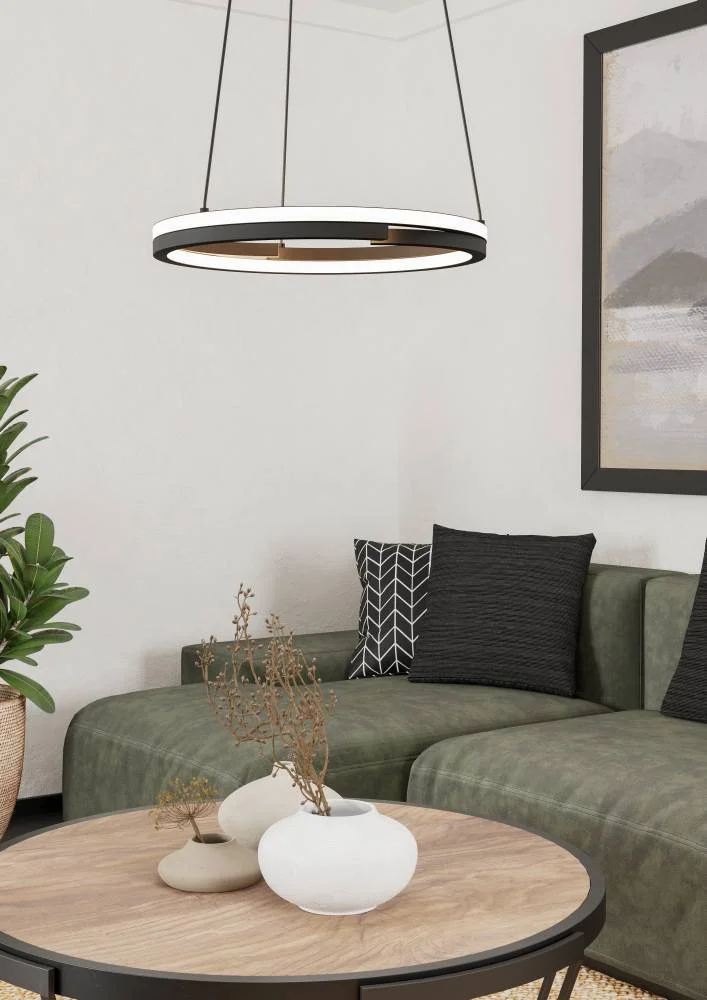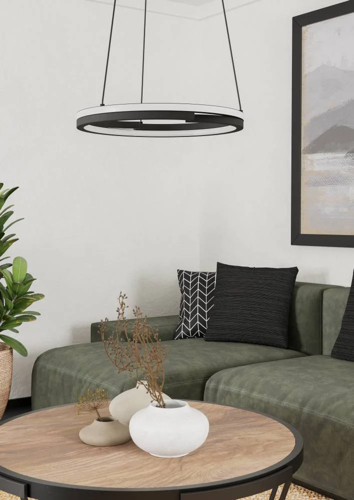 Светильник подвесной LED Mezzomonte 901822 Eglo чёрный на 1 лампу, основание чёрное в стиле хай-тек современный кольца