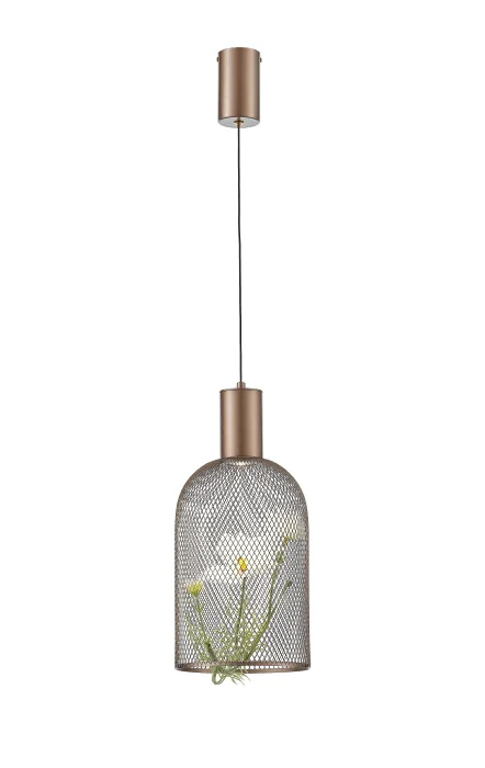 Стильный и нестандартный, подвесной светильник Ophelia задаёт тон интерьеру. Его главная особенность — плафон-сетка из чёрного металла, внутри которого «пойман» декоративный цветок. Такая деталь превращает светильник в арт-объект, а не просто источник света. Модель выполнена в изящном оттенке розового золота с белым акцентом внутри. Светильник рассчитан LED-источник (4 Вт, 577 лм), светит мягким нейтральным светом (4000 К), подходит для натяжных потолков и обеспечивает освещение до 5 м². Высота регулируется от 50 до 133 см, управление — от настенного выключателя. Изделие крепится на планку, корпус выполнен из металла и алюминия, внутри — декоративный элемент из искусственного цветка. Оптимален для освещения кухни, прихожей, уютной гостиной или стильного кафе. Отлично работает в композиции с другими моделями серии.