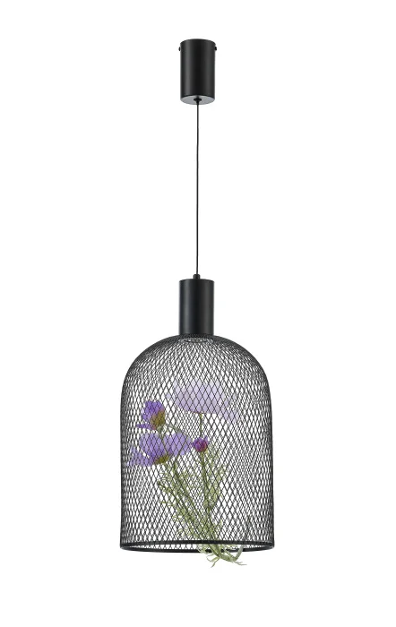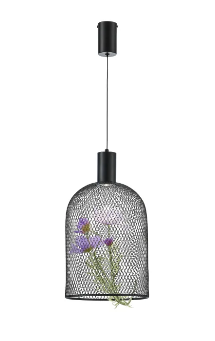 Стильный и нестандартный, подвесной светильник Ophelia задаёт тон интерьеру. Его главная особенность — плафон-сетка из чёрного металла, внутри которого «пойман» декоративный цветок. Такая деталь превращает светильник в арт-объект, а не просто источник света. Тёплый нейтральный свет с температурой 4000 К и высоким индексом цветопередачи (CRI 91) создаёт комфортную атмосферу в зоне отдыха, на кухне, в кафе или прихожей. Высота подвеса регулируется от 57 до 140 см, что позволяет адаптировать модель под разную высоту потолков. Корпус выполнен из металла, алюминия и пластика, плафон — из матового чёрного металла, мощность LED-лампы — 4 Вт, площадь освещения — до 7 м². Светильник подходит для установки на натяжные потолки и управляется от настенного выключателя. Ophelia эффектно впишется в современный интерьер и станет его визуальным центром.