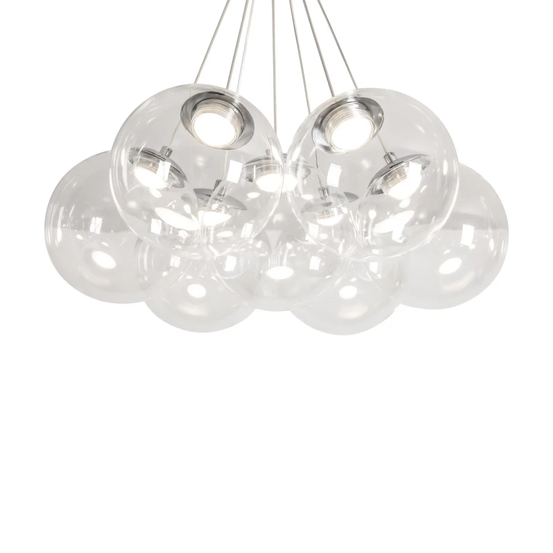 Арматура - металл (никель). Абажуры из дутого стекла с LED (2800K). Прозрачные плафоны подчеркивают современный дизайн. Высота 500-2500 мм. Серия станет ярким акцентом в вашем интерьере.