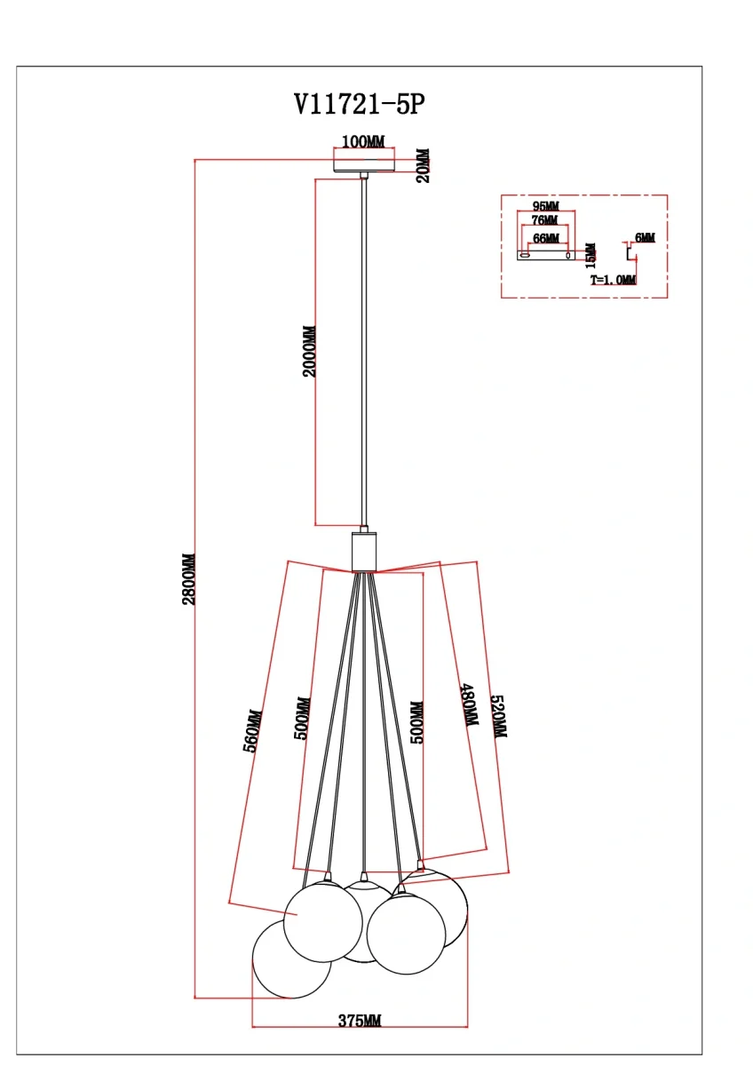 Светильник подвесной Renny V11721-5P Moderli линейный купить с доставкой по Москве и России в интернет магазине Уютный-Свет.рф