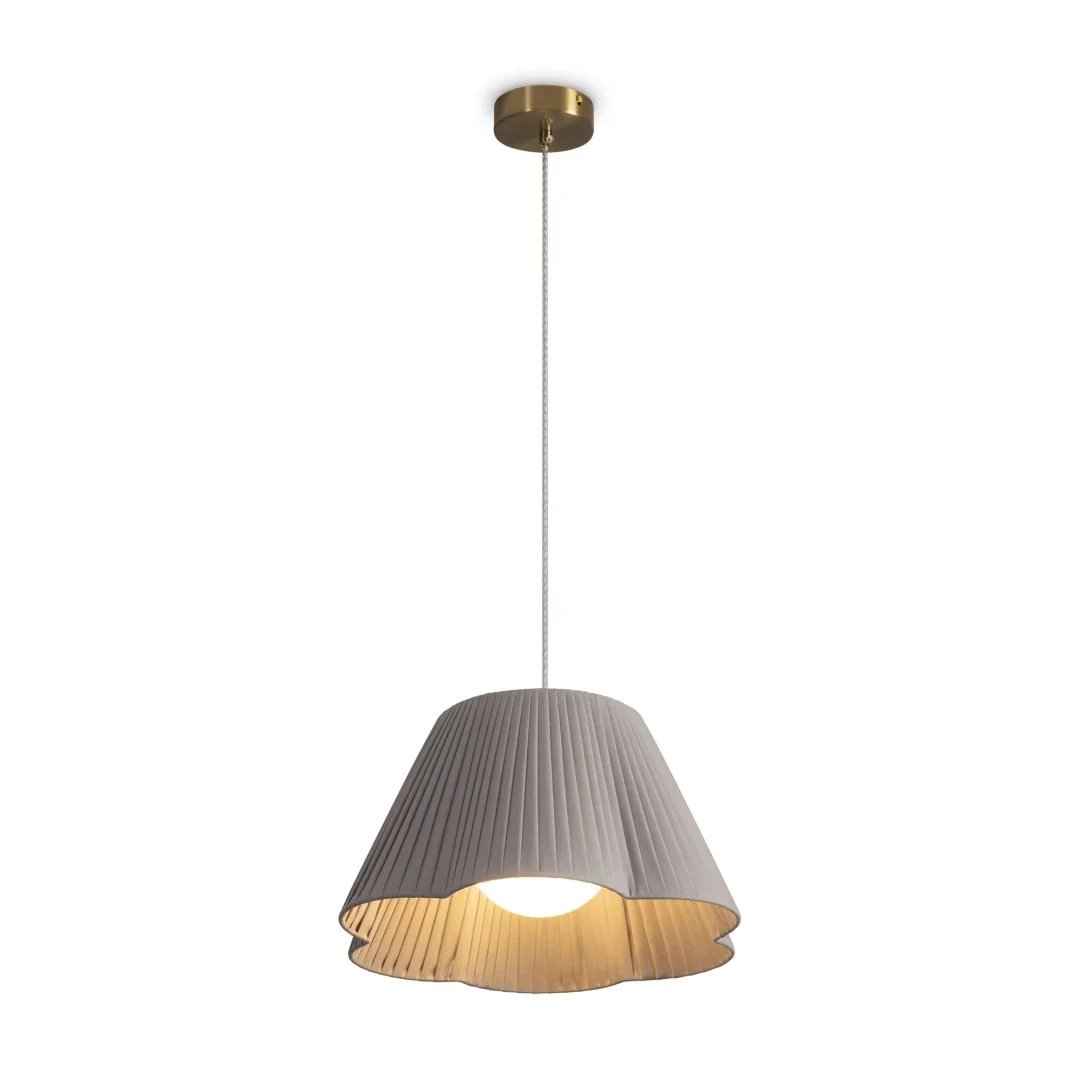 Металлическая арматура в цвете RAL 1019. Тканевые абажуры в светлых оттенках. Лампа E27 (не в комплекте).Бра с двумя источниками освещения Led и цоколь E27. Разнообразие типов светильников в серии.