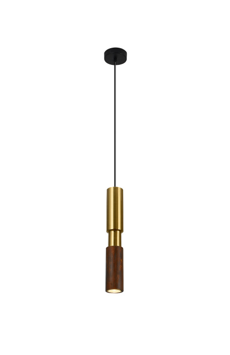 Подвесной светильник Moderli Telma — это эффектное сочетание теплоты дерева и благородного блеска металла. Его лаконичный дизайн в современном стиле отлично впишется в интерьер кухни, обеденной зоны, кафе, спальни или гостиной. Светильник легко становится не просто источником света, а стильным акцентом пространства. Корпус и плафон выполнены из прочного металла в золотистом оттенке и дополнены элементами из натурального дерева. Такое сочетание не только эстетично, но и долговечно. Цилиндрическая форма плафона направляет свет вниз, создавая уютное локальное освещение, которое идеально подходит для небольших зон. Светильник рассчитан на одну лампу с цоколем GU10 мощностью до 50 Вт. Подходит как для ламп накаливания, так и для LED. Он освещает площадь до 2 м², формируя комфортную зону света. Благодаря регулируемому подвесу от 20 до 100 см, светильник легко адаптируется под высоту потолка. Конструкция подходит для установки на натяжные потолки, а высота корпуса без подвеса составляет 37 см, что позволяет использовать модель даже в помещениях с ограниченным пространством. Степень защиты IP20 делает светильник безопасным для использования в сухих помещениях. Он отлично впишется в обстановку кафе, ресторана, гостиницы или частного дома, добавив в интерьер тепло, стиль и точечный свет.