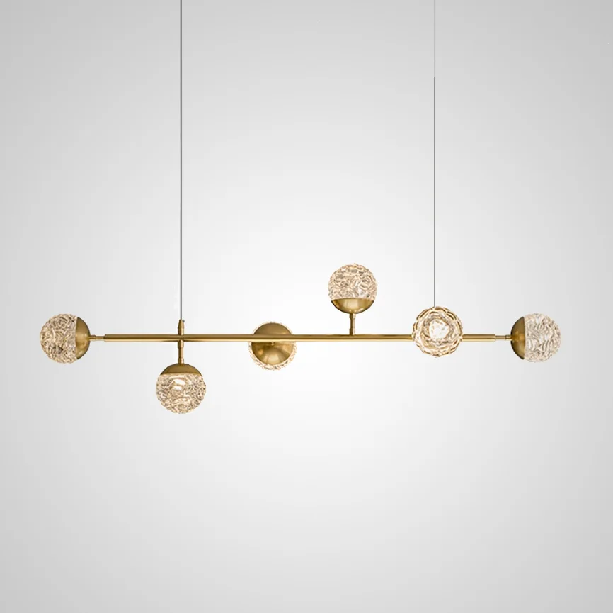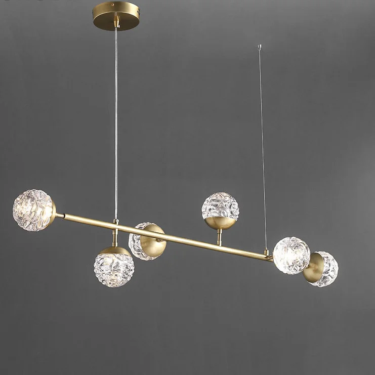 Светильник подвесной VERENA LONG 203524-23 ImperiumLoft в стиле Модерн, рекомендуем его для установки в прихожей, кухне, гостиной или спальне, возможна установка на натяжной потолок при использовании светодиодных ламп, будет идеально дополнять светильники коллекции Verena от фабрики ImperiumLoft. Характеристики светильника: цвет плафона - Прозрачный, материал плафона - Стекло, цвет арматуры - Латунь, материал арматуры - Металл. В светильнике 6 ламп мощностью по 3 Вт с цоколем LED, площадь освещения до 4 кв.м, размеры светильника **1030*300*** мм. Светильник 203524-23 Verena от фабрики ImperiumLoft можно купить с доставкой из рук в руки по Москве и России в нашем специализированном интернет магазине интерьерного освещения.