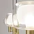 Цвет арматуры в благородном золотом оттенке и материал из алюминия придают ей утончённый и роскошный вид. Люстра оснащена тремя лампами с цоколем E14 и мощностью по 60 Вт каждая, что позволяет эффективно освещать площадь до 9 кв.м. Особенностью этой модели являются плафоны из двойного выдувного стекла, которые создают мягкое и рассеянное освещение. Высота плафона составляет 260 мм, а общая регулируемая высота люстры варьируется от 290 мм до 1540 мм, что делает её универсальной для различных потолков, включая натяжные. Размеры люстры: длина 1040 мм и ширина 180 мм, что позволяет ей идеально вписаться в интерьеры разных размеров.