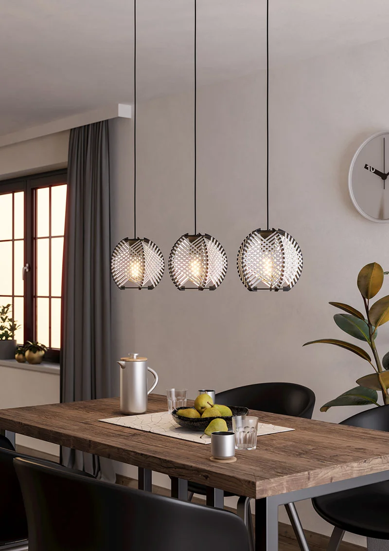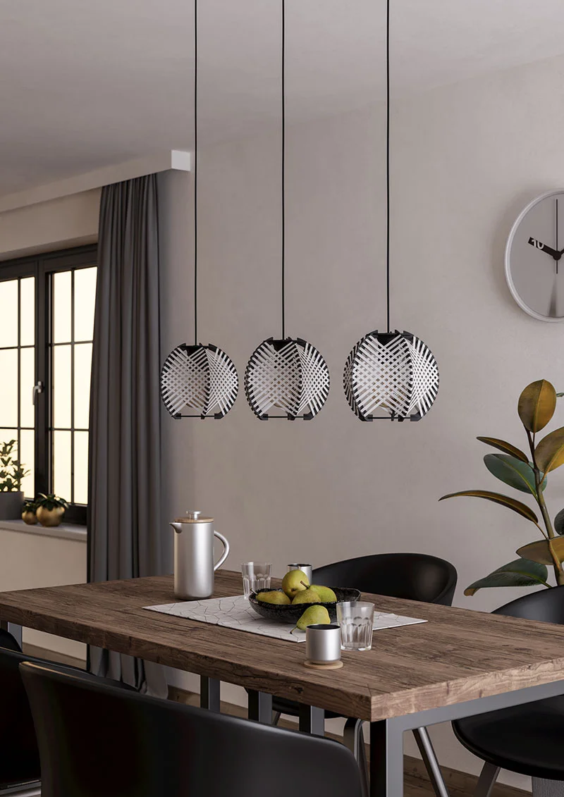 Светильник подвесной Waverton 44007 Eglo в стиле Кантри / Лофт / Современный, рекомендуем его для установки в прихожей, кухне, гостиной или спальне, возможна установка на натяжной потолок при использовании светодиодных ламп, будет идеально дополнять светильники коллекции Waverton от фабрики Eglo. Характеристики: плафон - Белый / Чёрный, материал плафона - Дерево / Текстиль, цвет арматуры - Чёрный, материал арматуры - Металл. В светильнике 3 лампы мощностью по 40 Вт с цоколем E27, площадь освещения до 6 кв.м, размеры светильника *1100*920*220*** мм. Стильный и лаконичный светильник Eglo 44007 Waverton можно купить с доставкой из рук в руки по Москве и России в нашем специализированном интернет магазине интерьерного освещения Уютный-Свет.рф. Вопросы по этому светильнику можете уточнить в нашем Telegram канале.