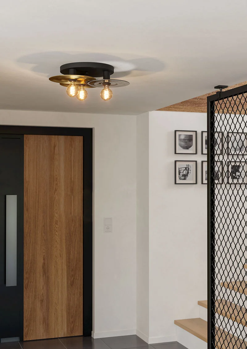 Светильник потолочный Lintmill 44027 Eglo в стиле Лофт / Современный, рекомендуем его для установки в прихожей, кухне, гостиной или спальне с низким потолком, будет идеально дополнять светильники коллекции Lintmill от фабрики Eglo. Характеристики: плафон - Без плафона, материал плафона - , цвет арматуры - Матовая латунь / Чёрный, материал арматуры - Металл. В светильнике 3 лампы мощностью по 40 Вт с цоколем E27, площадь освещения до 6 кв.м, размеры светильника *200***530** мм. Потолочный светильник 44027 Lintmill от фабрики Eglo можно купить с доставкой из рук в руки по Москве и России в нашем специализированном интернет магазине интерьерного освещения Уютный-Свет.рф. Вопросы по этому светильнику можете уточнить в нашем Telegram канале.