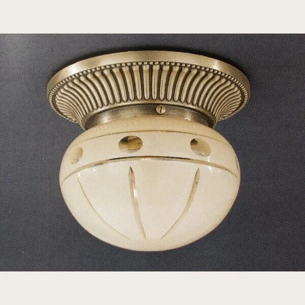 Светильник потолочный PL 7703/1 Reccagni Angelo в стиле Классика. Степень защиты: IP-20, рекомендуется для установки в прихожей, гостиной или спальне, будет идеально дополнять светильники серии 7703 от фабрики Reccagni Angelo. Цвет плафона - Бежевый, материал плафона - Стекло, цвет арматуры - Античная бронза, материал арматуры - Латунь / Металл. В светильнике 1 лампа мощностью - 60 Вт, с цоколем E27, площадь освещения до 3 кв.м, размеры светильника - *140**160 мм. Светильник 7703 PL 7703/1 можно купить с доставкой по Москве и России в нашем интернет магазине.