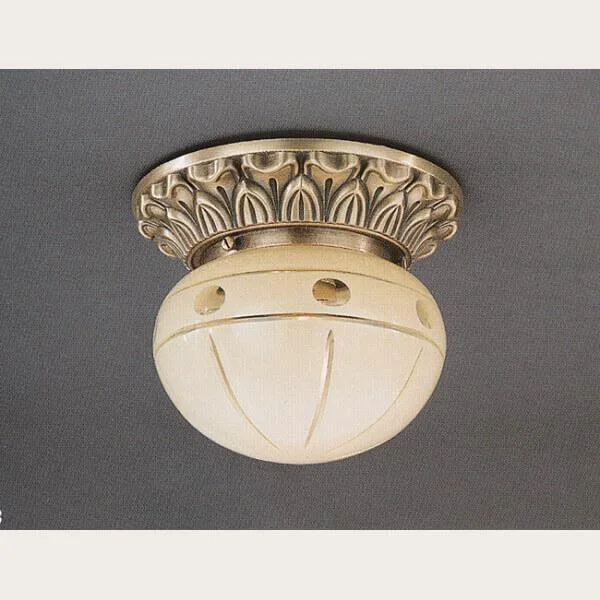 Светильник потолочный PL 7713/1 Reccagni Angelo в стиле Классика. Степень защиты: IP-20, рекомендуется для установки в прихожей, гостиной или спальне, будет идеально дополнять светильники серии 7713 от фабрики Reccagni Angelo. Цвет плафона - Бежевый, материал плафона - Стекло, цвет арматуры - Античная бронза, материал арматуры - Латунь / Металл. В светильнике 1 лампа мощностью - 60 Вт, с цоколем E27, площадь освещения до 3 кв.м, размеры светильника - *140**160 мм. Светильник 7713 PL 7713/1 можно купить с доставкой по Москве и России в нашем интернет магазине.