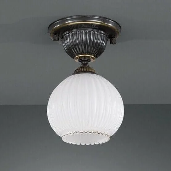 Светильник Потолочный PL 8900/1 Reccagni Angelo рекомендуется для интерьера в стиле Классика. В светильнике используется цоколь - E27, общее количество ламп - 1, мощностью - 60w, достаточной для качественного освещения, площади до 3м2. Светильник по своему стилю и площади освещения, подходит для комнат с низким потолком, таких как - прихожая, кухня, коридор, гостиная или спальня. Основной материал плафона у светильников данной серии является – Стекло, цвет плафона – Белый, в качестве материала арматуры выступает – Латунь / Металл, цвет арматуры – Бронза / Коричневый.