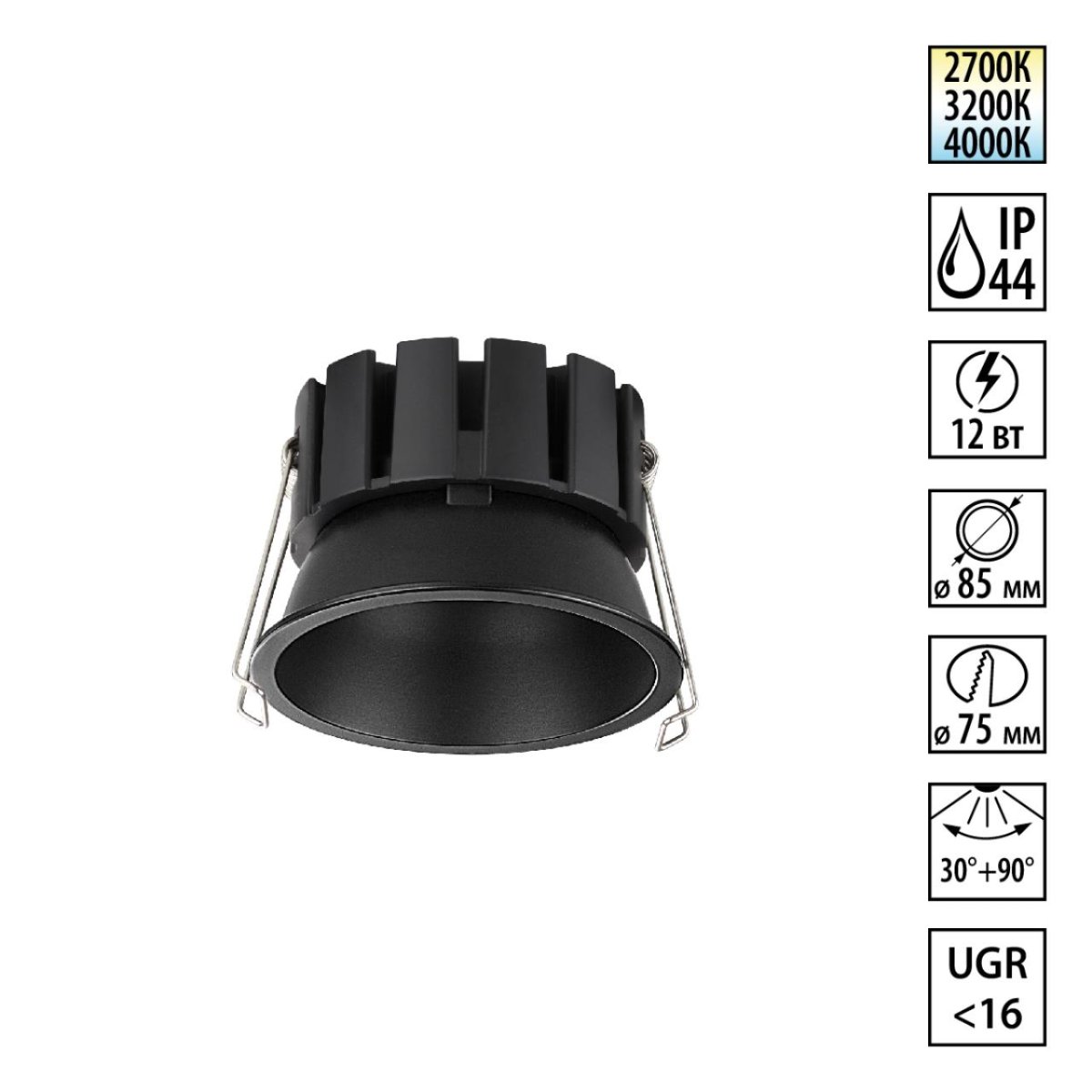 Светильник точечный LED Solis 359858 Novotech чёрный на 1 лампу, основание чёрное в стиле хай-тек круглый фото 7